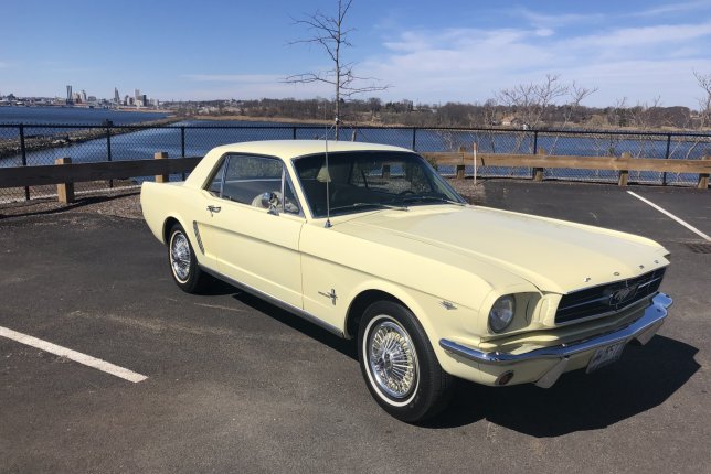 Iconic 1965 Ford Mustang. Springtime yellow. Available for weddings, anniversaries,